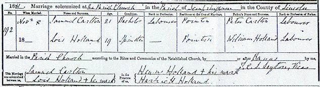 | Marriage | Samuel Carlton and Lois Holland | Nov | 8 | 1881 |