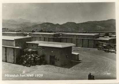 | Miranshah Fort, NWF 1939 Because the fort was subject to continual intermittant sniper fire the aircraft were started up inside the fort and at the last minute the gates were opened and the aircraft took off. Upon return the aircraft had to land outside and quickly taxi upto the gates which were opened just in time for them to enter and then closed again to keep out any natives with bad intentions.The aircraft at the right hand side of the picture is a Westland Wapiti and was one of the aircraft with which the Indian Air Force was founded with when 27 squadron transfered to Risalpur and became the flying training school for the first intake to the newly formed IAF. |