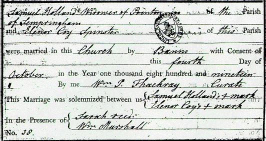 | Marriage | Samuel Holland w. of Pointon and Elenor Coy Marriage Certificate | Oct | 4 | 1819 |