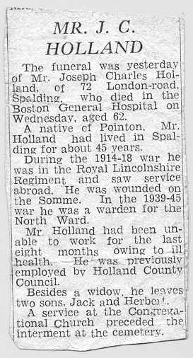 This Picture of John Charles Holland, known in later life as Joseph Charles Holland, was taken when he was in the Royal Lincolnshire regiment during World War 1